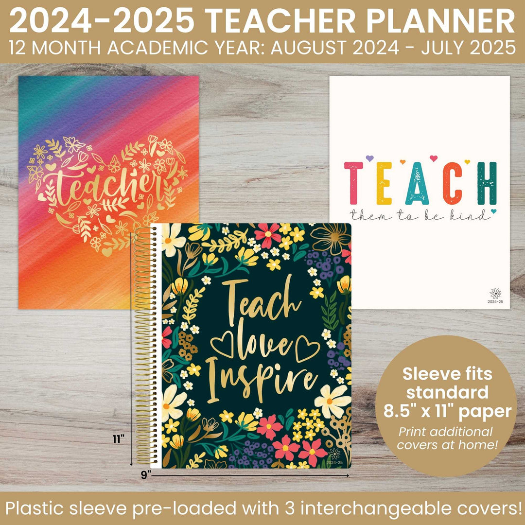 Undated Teacher Planner & Calendar, Interchangeable Cover bloom